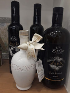Le Aziende Agricole Stasi, situate nel cuore del Salento, rappresentano, da quattro generazioni, un’importante eccellenza pugliese ed italiana. Gli ulivi, tra Ionio ed Adriatico, patrimonio e simbolo di una terra luminosa e colorata, in armonia con questi luoghi esprimono la loro bontà ed eleganza in un extra vergine unico e pregiato. Disponibile in Enoteca con le sue varietà in bottiglia e in lattina. Bellissima la versione in ceramica: delicata ed elegante, è stata spesso scelta dagli sposi come bomboniera.